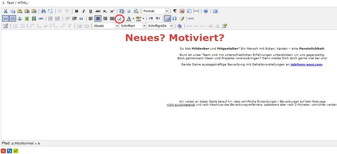Um unerwünschte Formatierungen zu vermeiden, sollten Sie Texte aus Word (oder ähnlichen Schreibprogrammen) unformatiert einfügen: